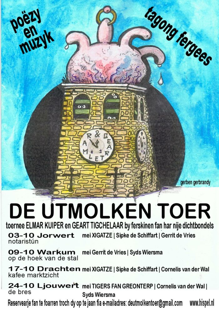Dy presintaasje is it startskot foar harren toernee troch provinsje Fryslân. Alle folgjende wykeinen yn oktober steane hja op in oar plak, mei oare kollega-dichters en Xigatze wurdt ôfwiksele mei Kuiper syn band Tigers fan Greonterp. Op 9 oktober steane hja yn Warkum yn Op de Hoek van de Stal, 17 oktober yn kafee Marktzicht yn Drachten en as ôfsluter fan de toer op 24 oktober yn De Bres te Ljouwert. Der moat fanwegen koroana fan te foarren reservearre wurde.