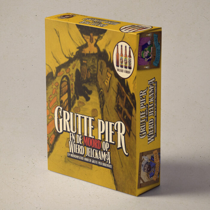 It Grutte Pier ‘moardmystearje’ hat alles yn him om in collector’s item te wurden. Wa’t belangstelling hat, kin fan 28 oktober ôf alfêst syn of har eksimplaar bestelle fia gruttepierbrouwerij.nl/moordspel. Fan heal novimber ôf is it aventoer te krijen by selektearre sliterijen, supermerken en spultsjewinkels. Moai op ’e tiid as orizjineel kado, foar yn ’e skoech of ûnder de beam. Foar elkenien dy’t syn hân net omdraait foar ‘Bûter, brea en griene tsiis…’. Of wa’t yn alle gefallen leare wol om dy legindaryske wurden goed út te sprekken.