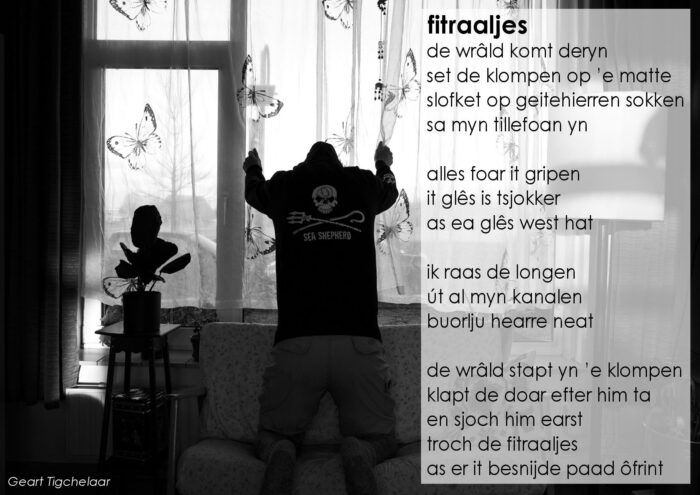 Op Ensafh is hjoed it gedicht ‘fitraaljes’ pleatst. Ik koe it net litte en kombinearje de foto mei it fers yn ien wurdbyld.